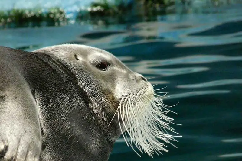 The largest Arctic seal species, the bearded seal, grows up to 8 feet long and 800 pounds. Their long, thick white whiskers on their short snouts give them a “bearded” appearance. You can find them in Alaska’s Chuckchi, Bering, and Beaufort seas, where they prefer to forage food in the lowest parts of the waters.